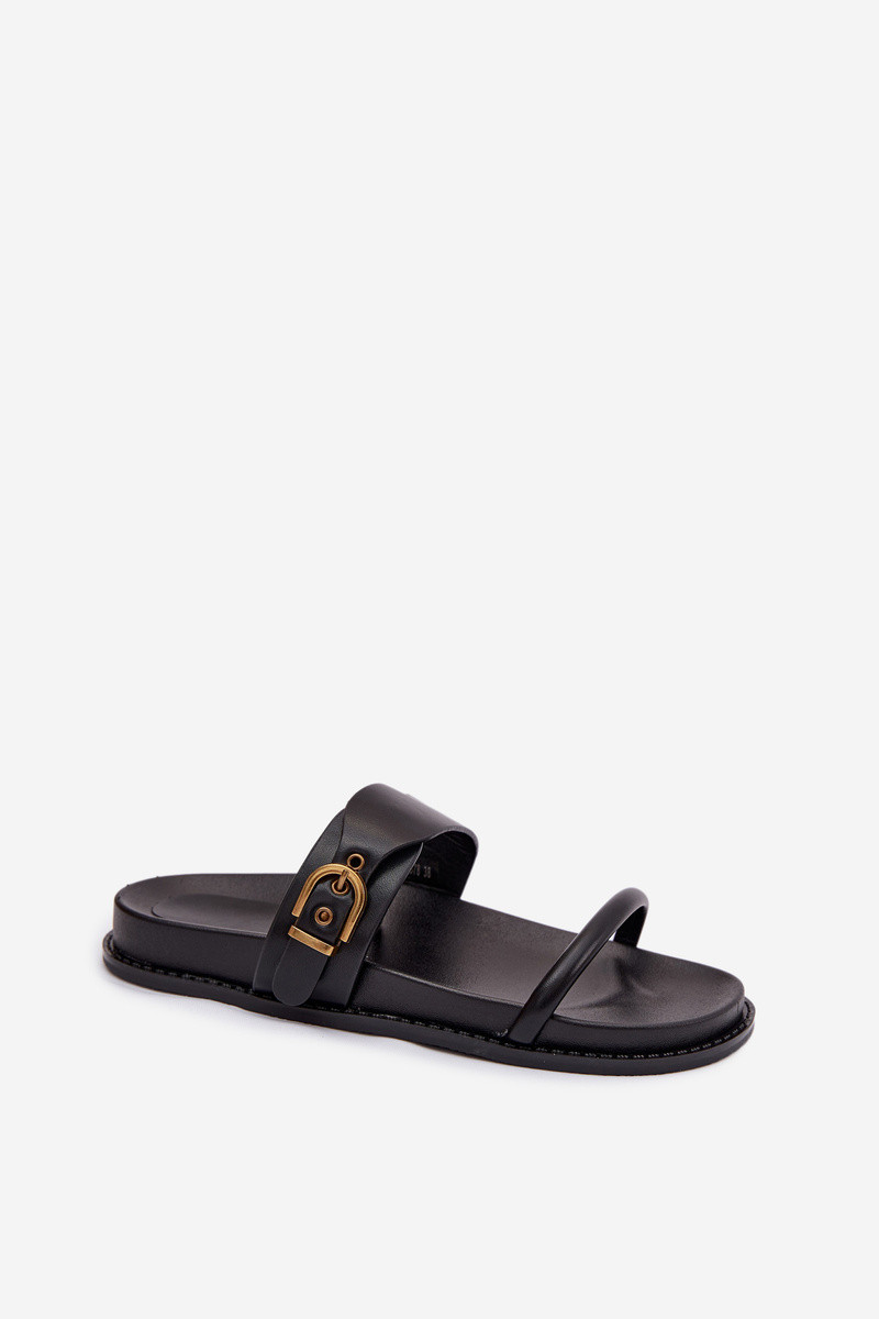 Chinelos femininos com fivelas douradas cor preta Sarilisse