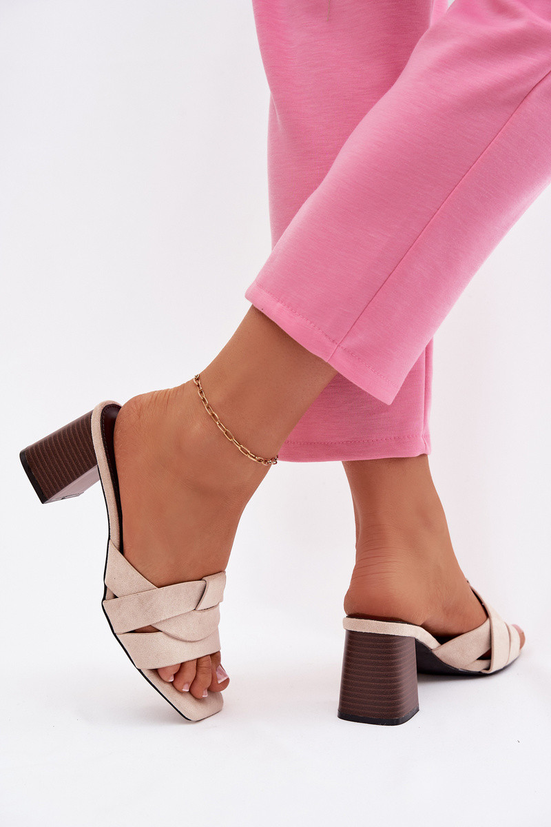 Chinelos femininos com salto com listras de camurça ecológicaoParae bege Corivelle