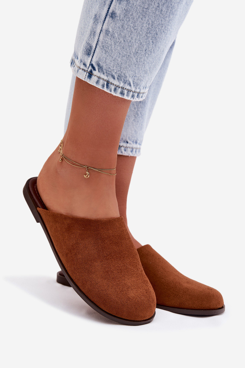 Chinelos Apartamento femininode camurça ecológicau cor marrom Veronelle