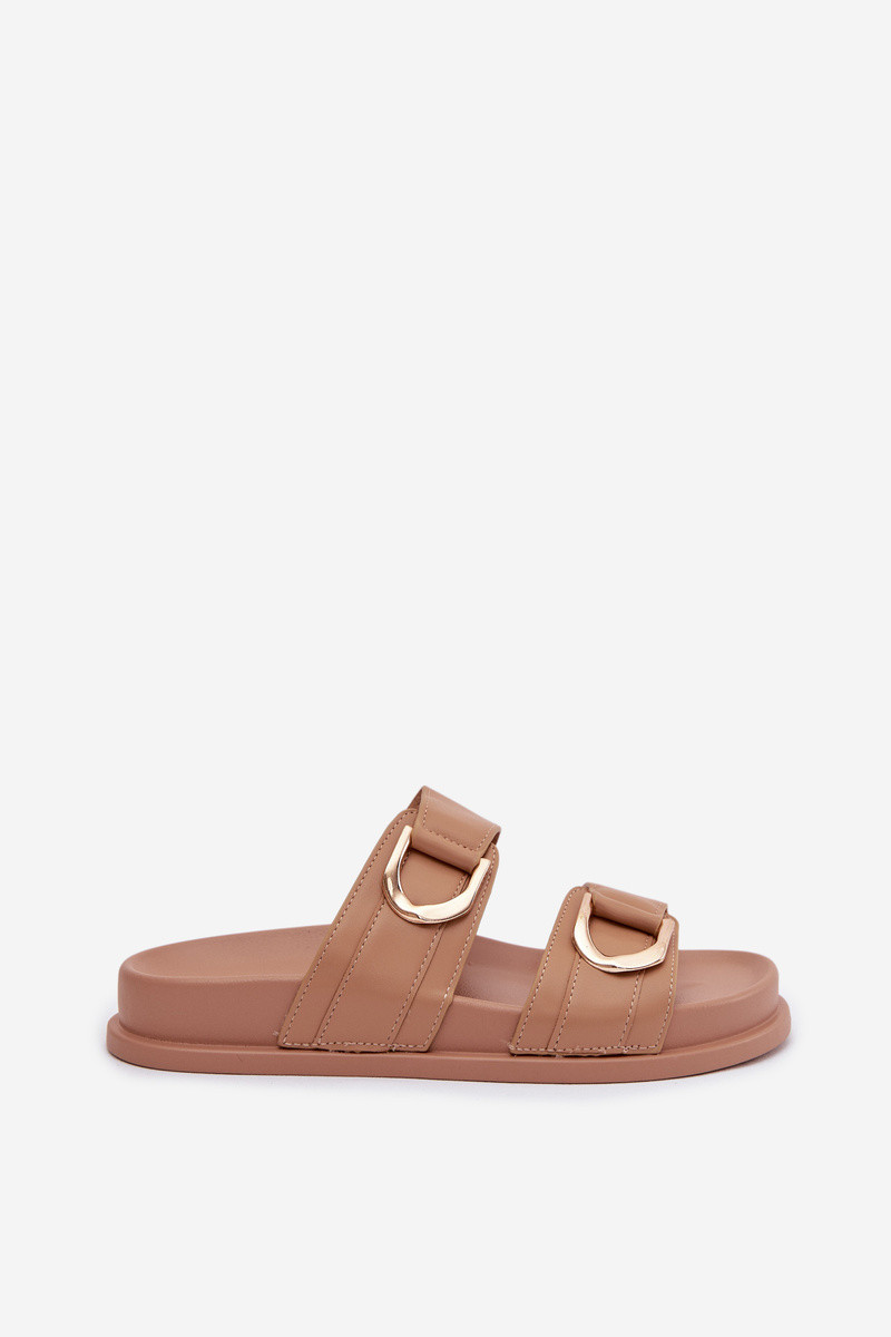 Chinelos femininos em couro sintético com tiras cor areia "Rosinessa"