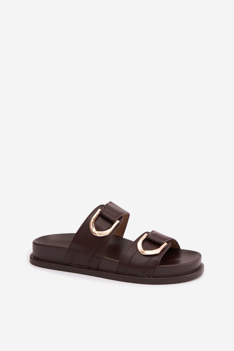 Chinelos femininos em couro sintético com tiras cor chocolate "Rosinessa"