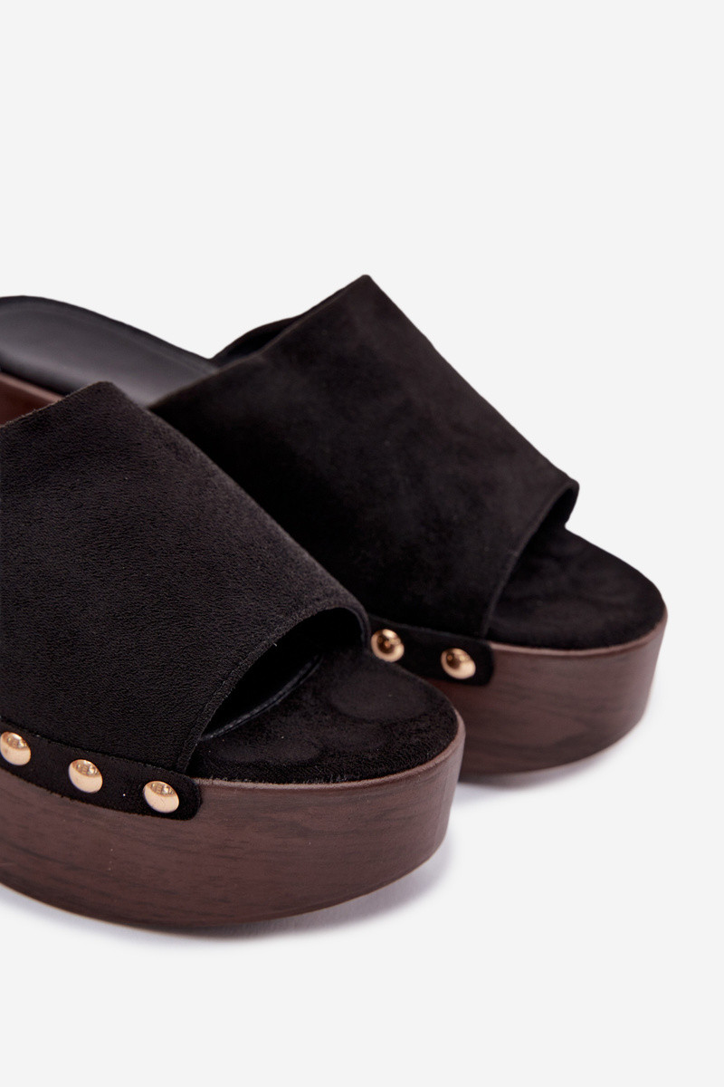 Chinelos femininos Em uma cunha Ze cor douradami Pregos de camurça ecológicaoParae cor preta Helivina