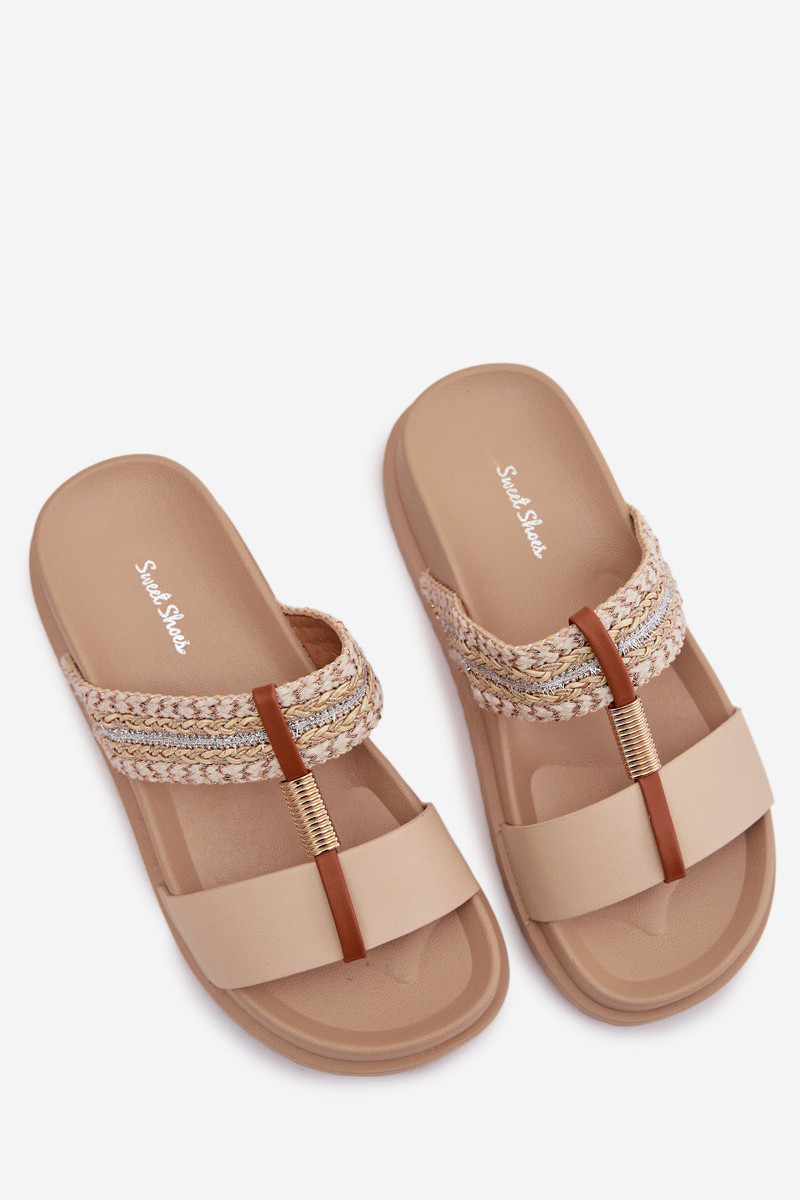 Chinelos femininos com uma plataforma com listras I cor douradam Detalem bege Tahlia