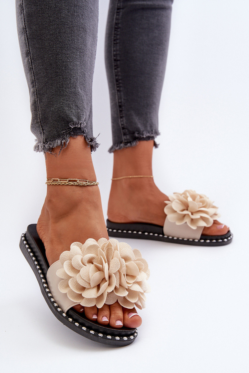 Chinelos femininos Ozdobione com motivos floraisami bege Cellanen