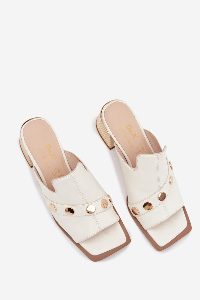Chinelos de couro com salto com salto decorado D&A CR61-3063 cor branca