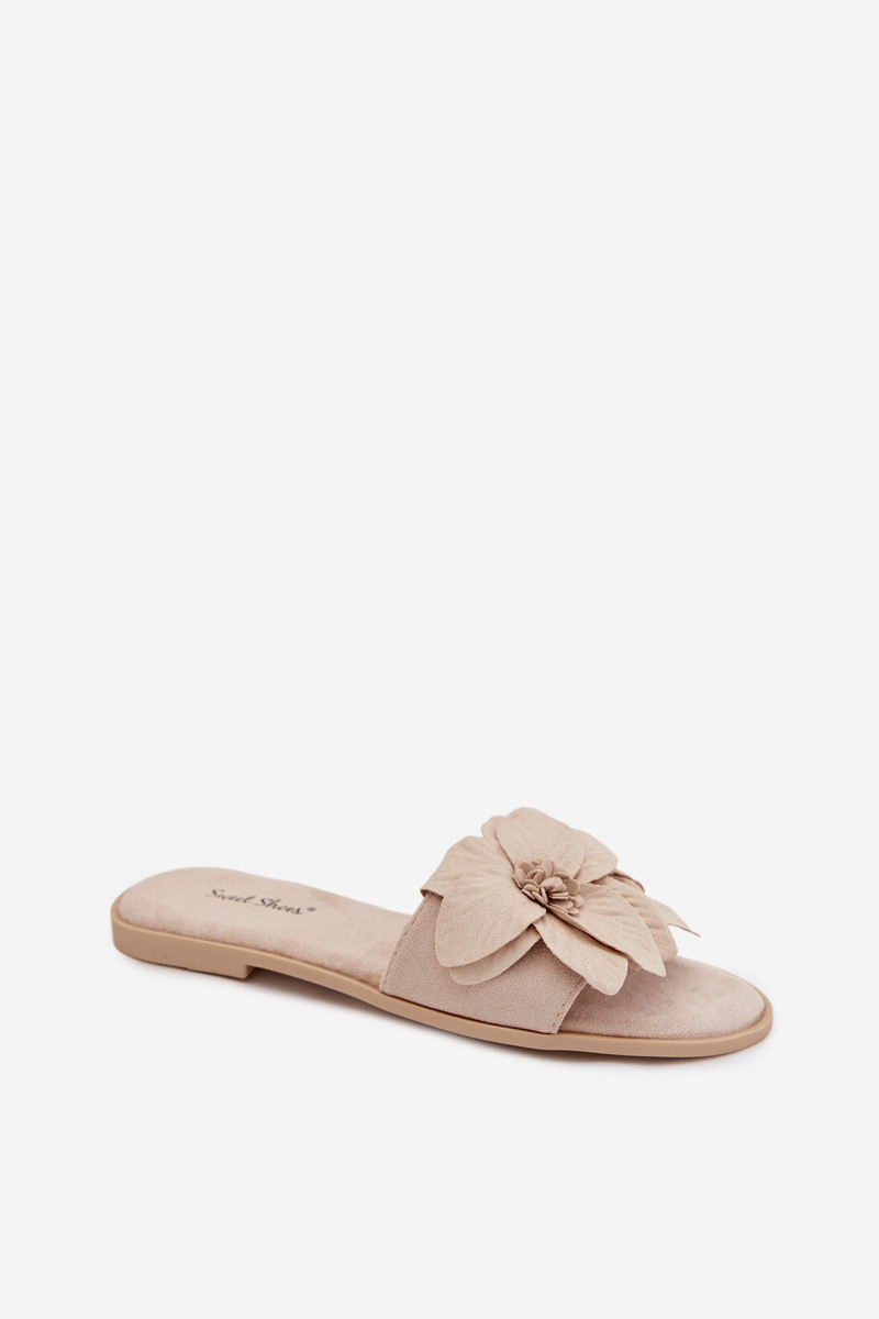 Chinelos femininos em tom marfim com motivos florais Elzoria
