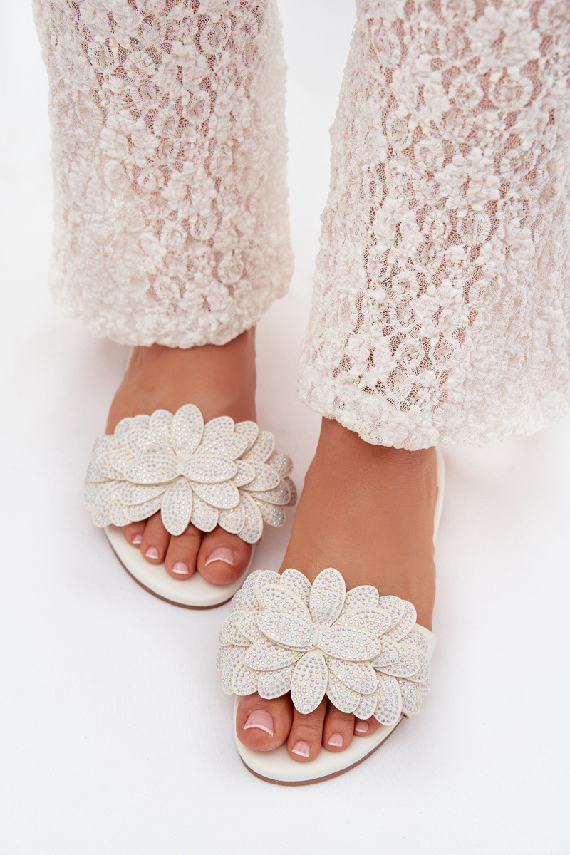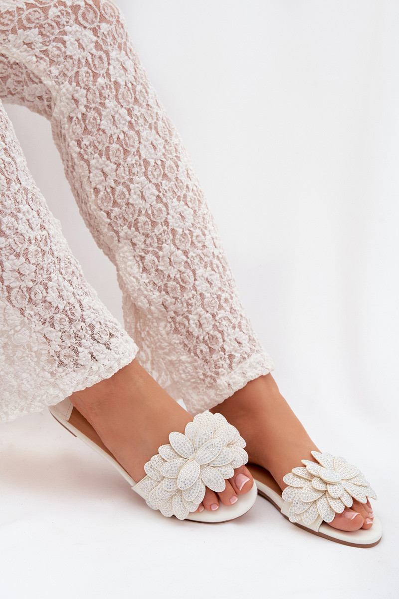 Chinelos Apartamento feminino Com decoração cor branca Grelora