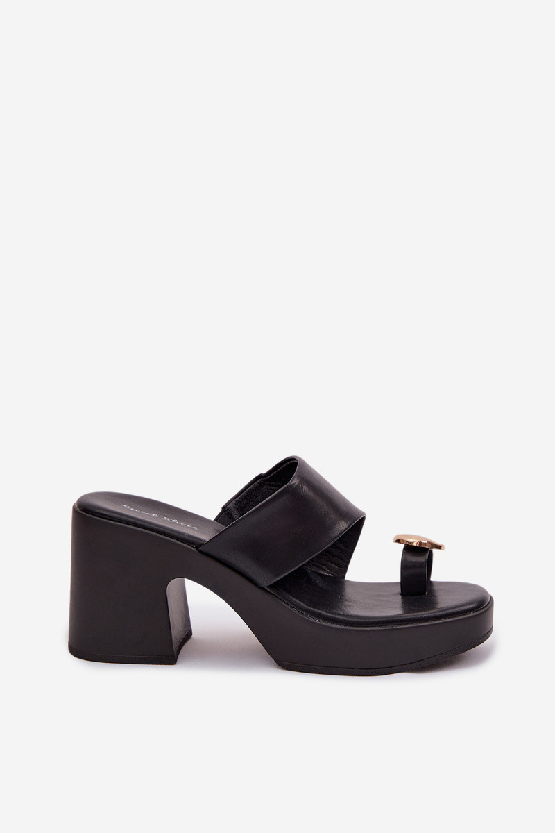 Chinelos femininos Habilitado SłupkoParaym Obcasie Ze cor douradam Detalem cor preta Sinora