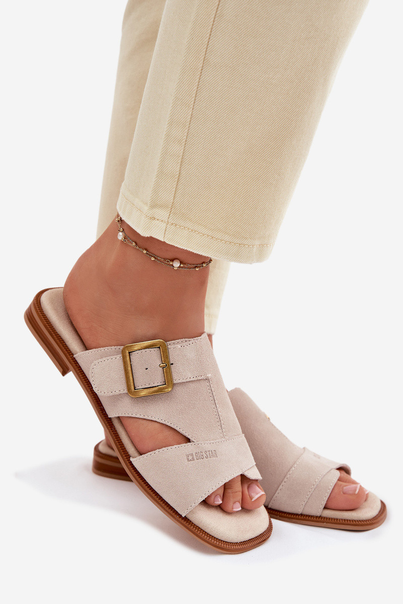 Chinelos femininos de camurça com salto largo com fivelas Big Star TT274476 bege