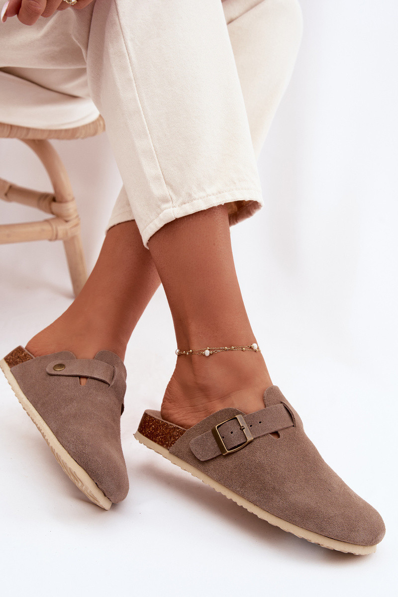 Chinelos femininos TamancosHabilitadoturalnego de camurçau Vinceza 101332 bege