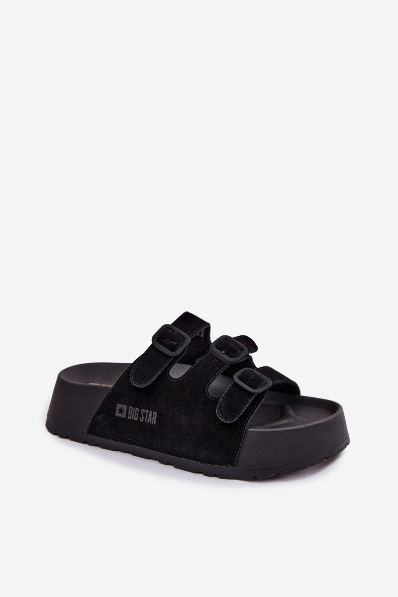 Chinelos femininos com uma plataforma com listras Big Star TT274531 cor preta