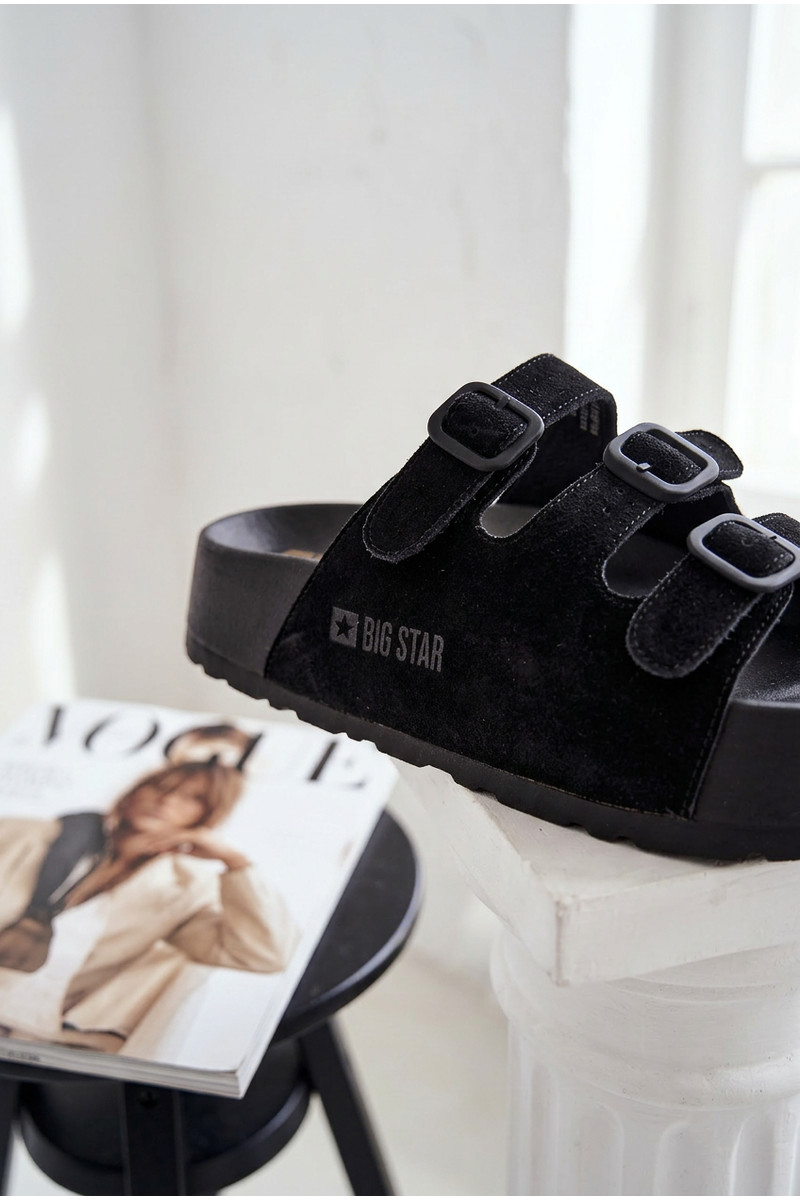 Chinelos femininos com plataforma e tiras Big Star TT274531 cor preta