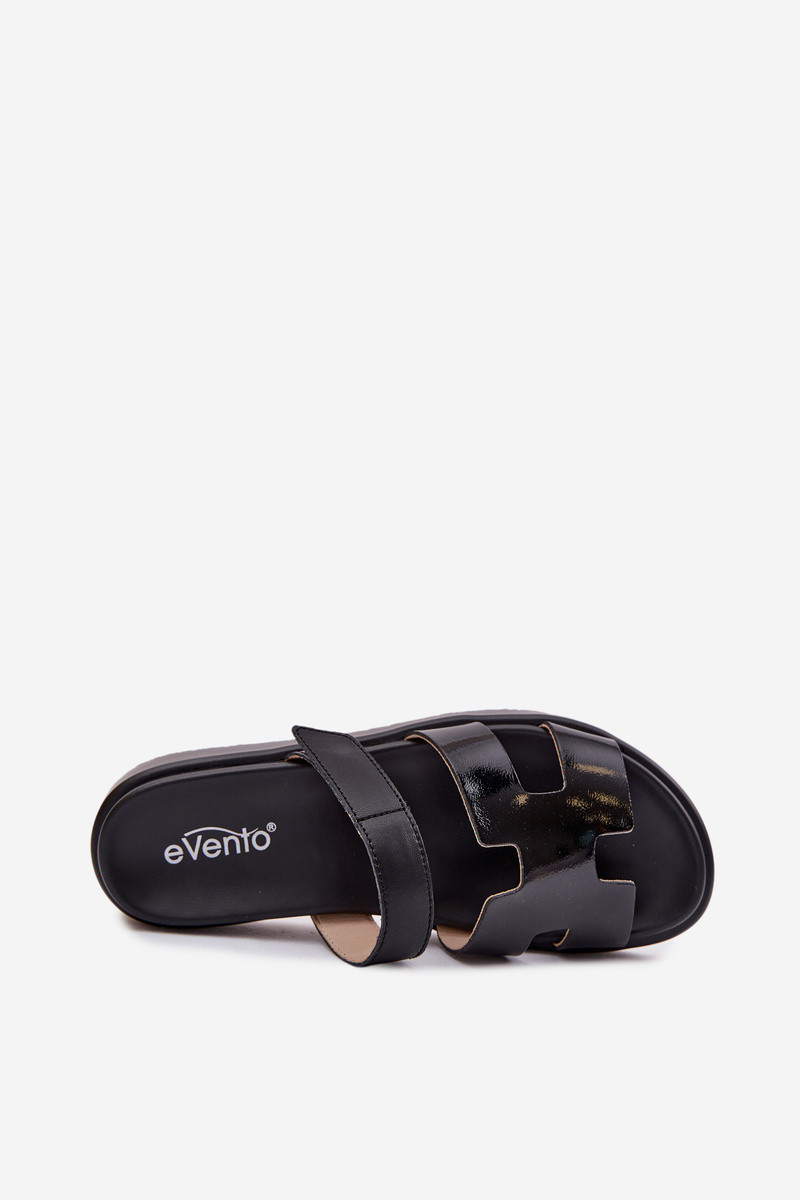 Chinelos de couro Femininocom fecho adesivoem cor preta Lemela