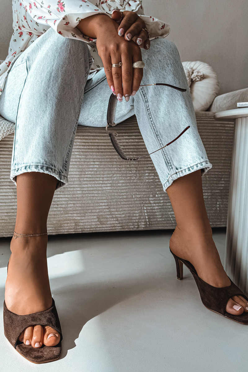 Chinelos femininos Habilitado Smukłym Obcasie CzekoladoParae Revina
