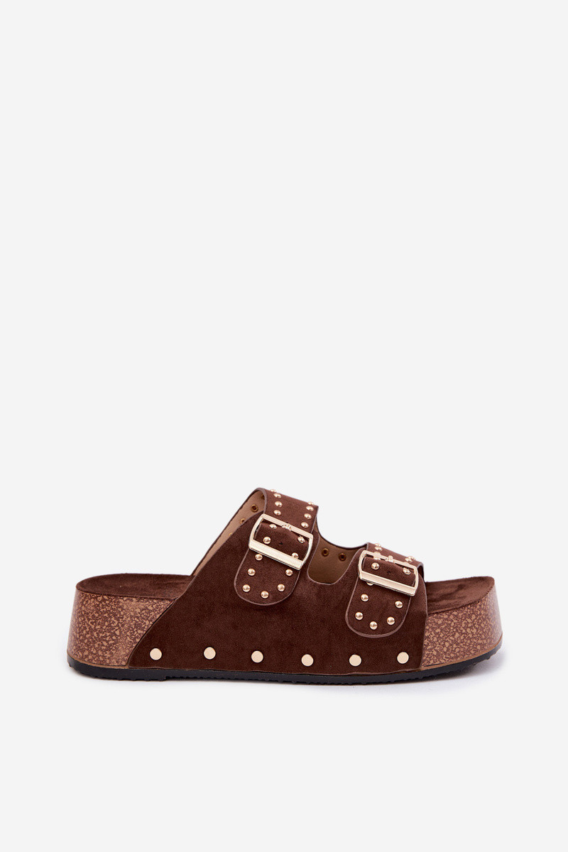 Chinelos femininos com fivelas E pregos CzekoladoParae Ledira