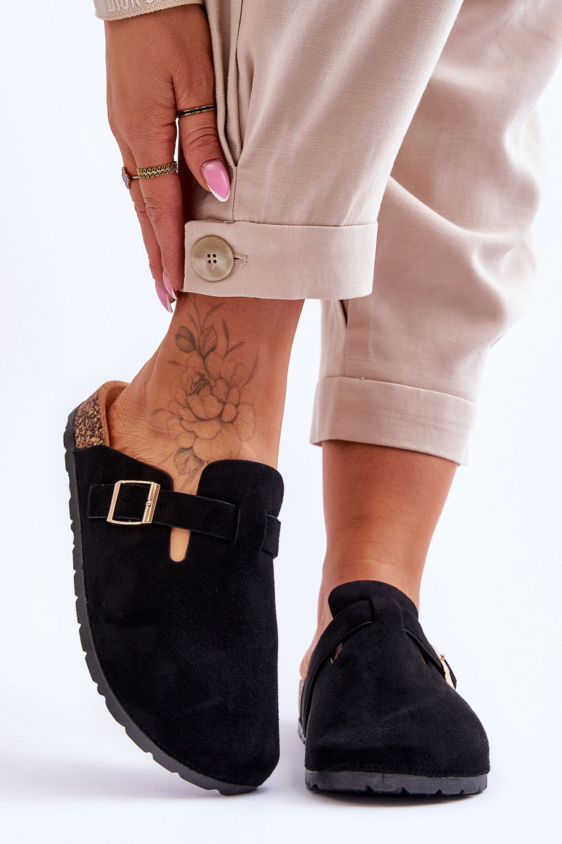 Chinelos de camurça sobre plataforma de cortiça cor preta Vellma