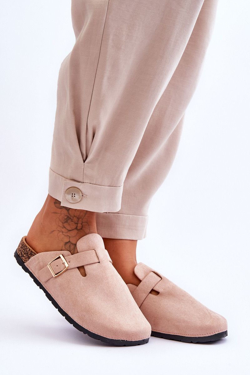 Chinelos de camurça sobre plataforma de cortiça bege Vellma