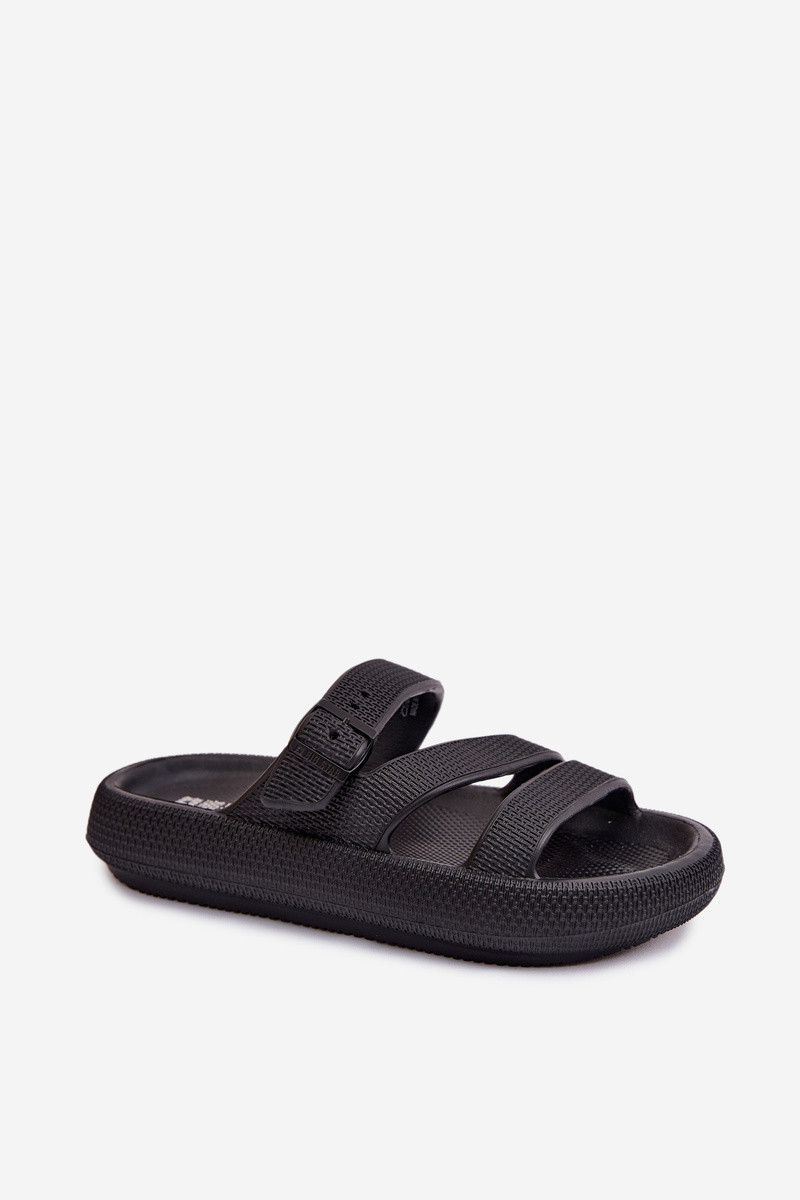 Chinelos leves femininos com tiras e fivelas Big Star TT274A037 cor preta