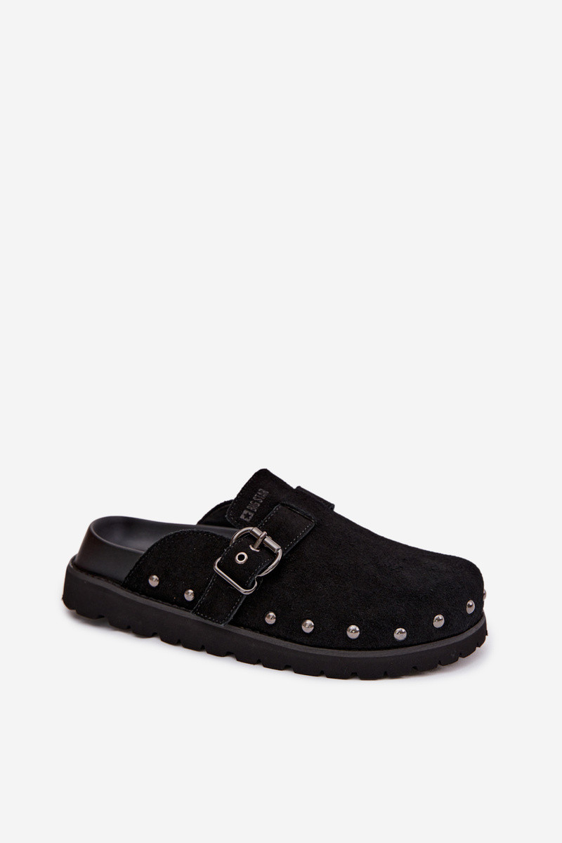 Chinelos Tamancos de camurça com uma plataforma com rebites I com fivelas Big Star TT274951 cor preta