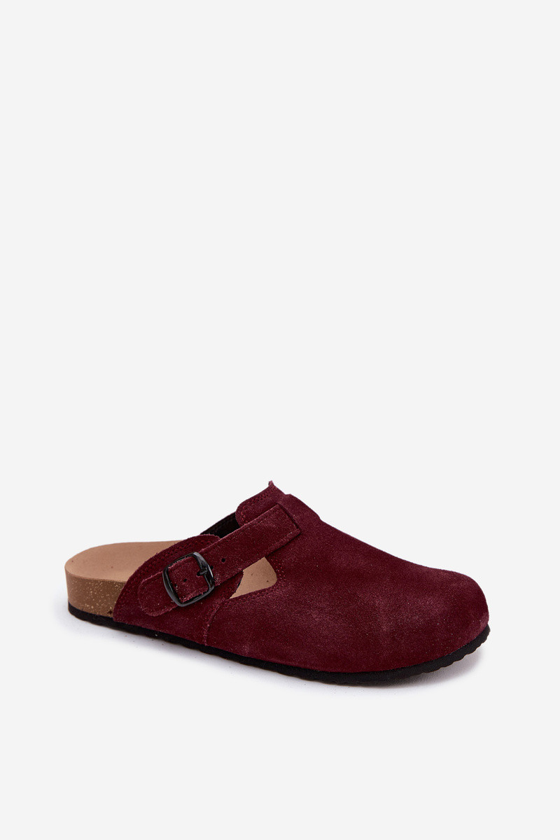 Pele chinelos de camurça Mule com fivelas Zazoo 1905 Escurocor roxa