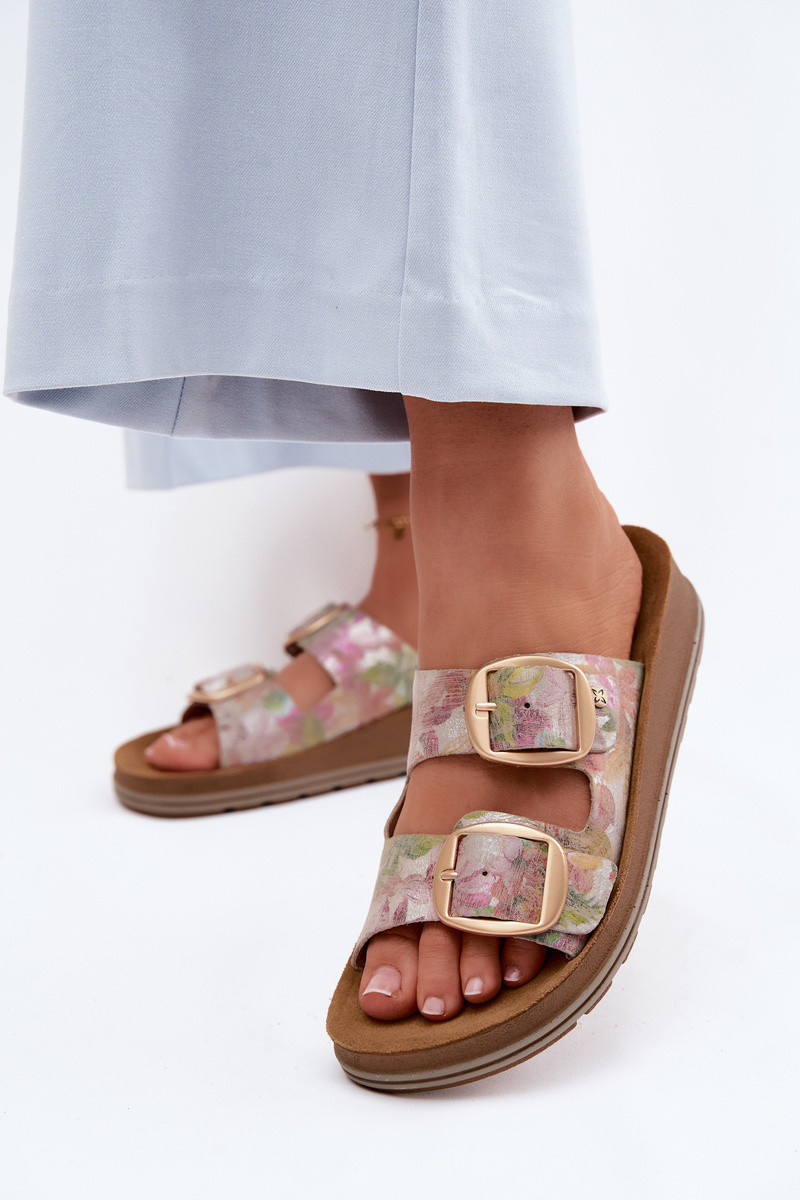 Chinelos de couro estampados com fivelas em várias cores
