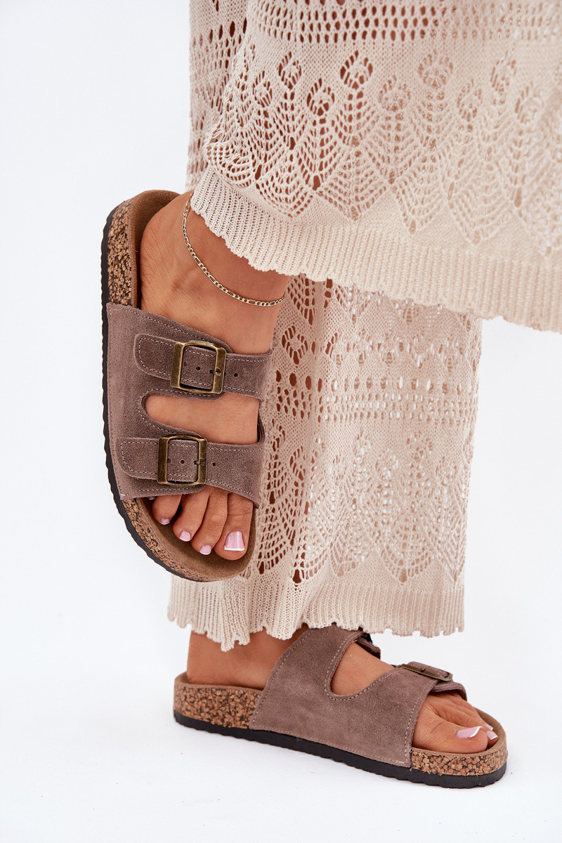 Chinelos de camurça marrons em sola de cortiça com fivelas Tavira