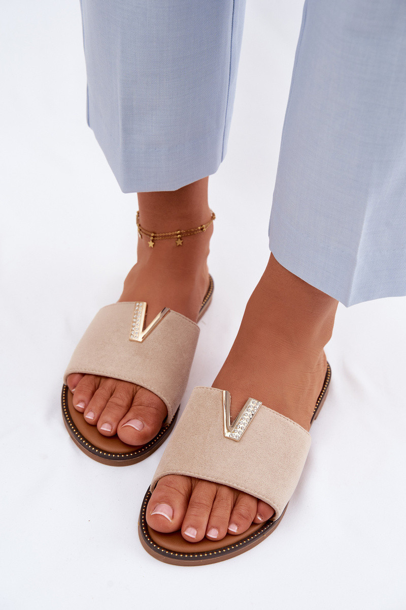 Chinelos femininos com detalhes decorativos na cor dourada Nelmira