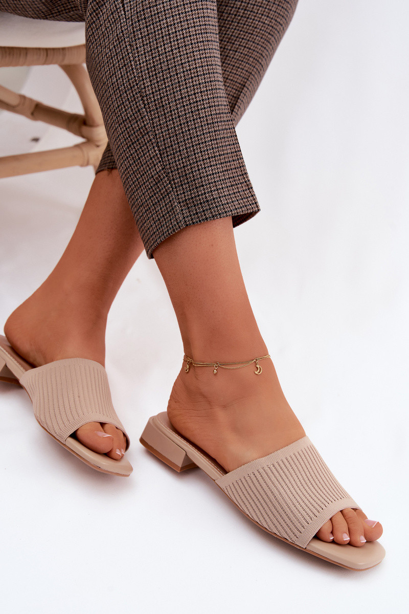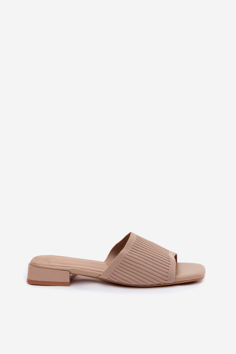 Chinelos femininos com salto largo bege Belissea