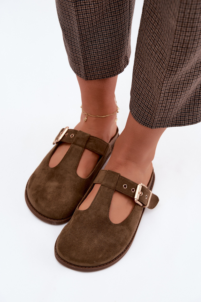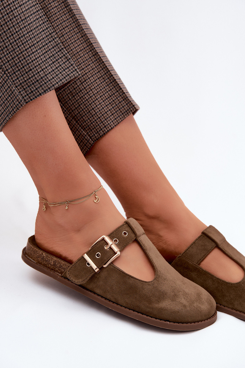 Chinelos femininos MuleImitacji de camurçau cor cáqui Melvia