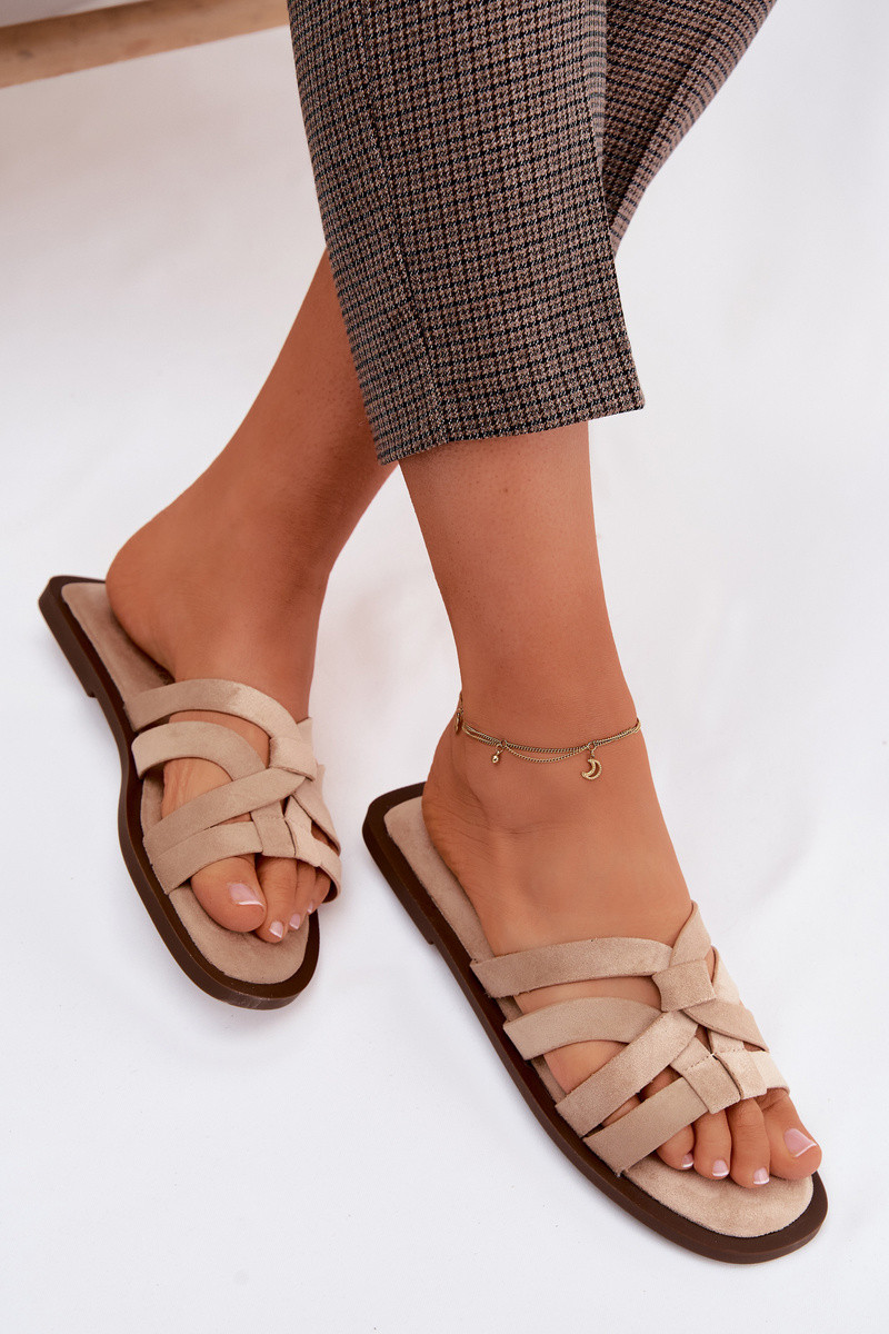 Chinelos Apartamento feminino com listras Imitacja de camurçau cor marrom Calvia