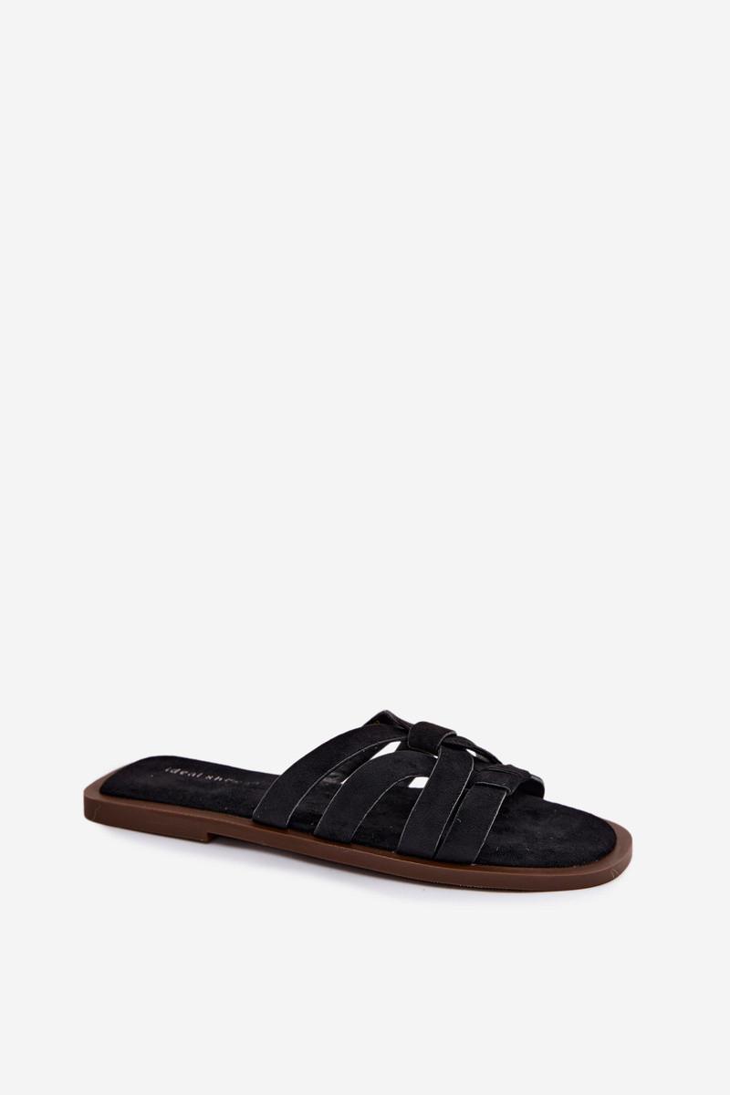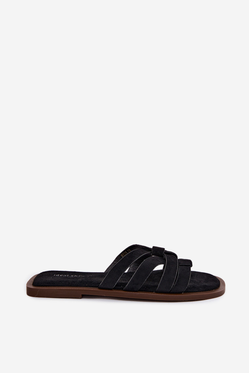 Chinelos Apartamento feminino com listras Imitacja de camurçau cor preta Calvia