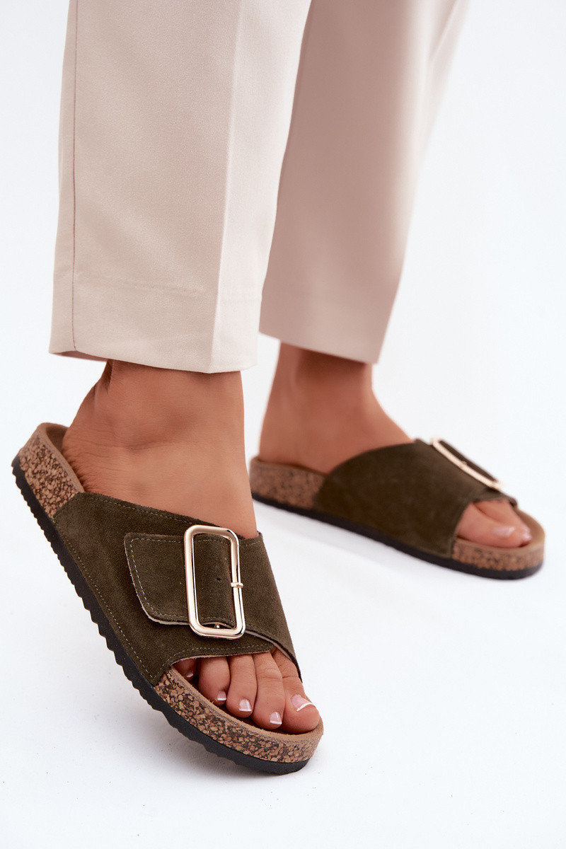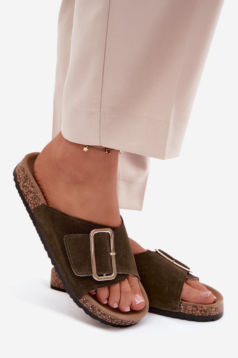 Pele Chinelos femininos de camurça com fivelas cor cáqui Beryl