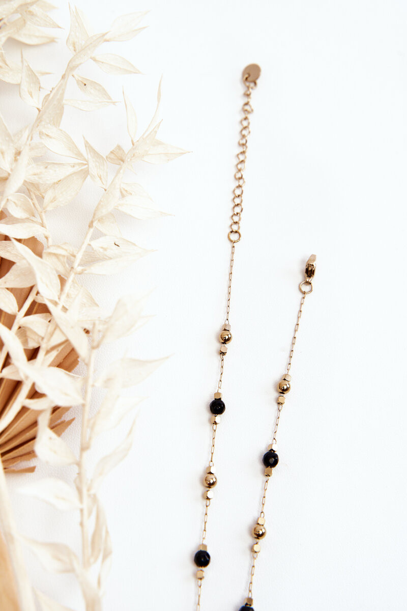 Colares femininos com contas pretas cor dourada
