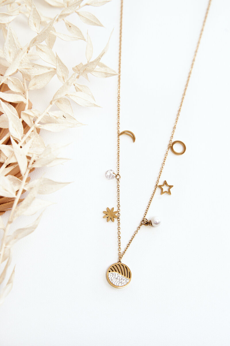 Corrente feminina Com pingentes da moda cor dourada