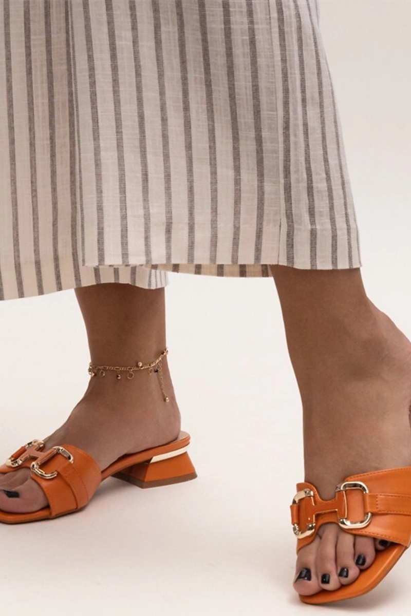 Klapki na niskim obcasie z ozdobną klamerką Luara