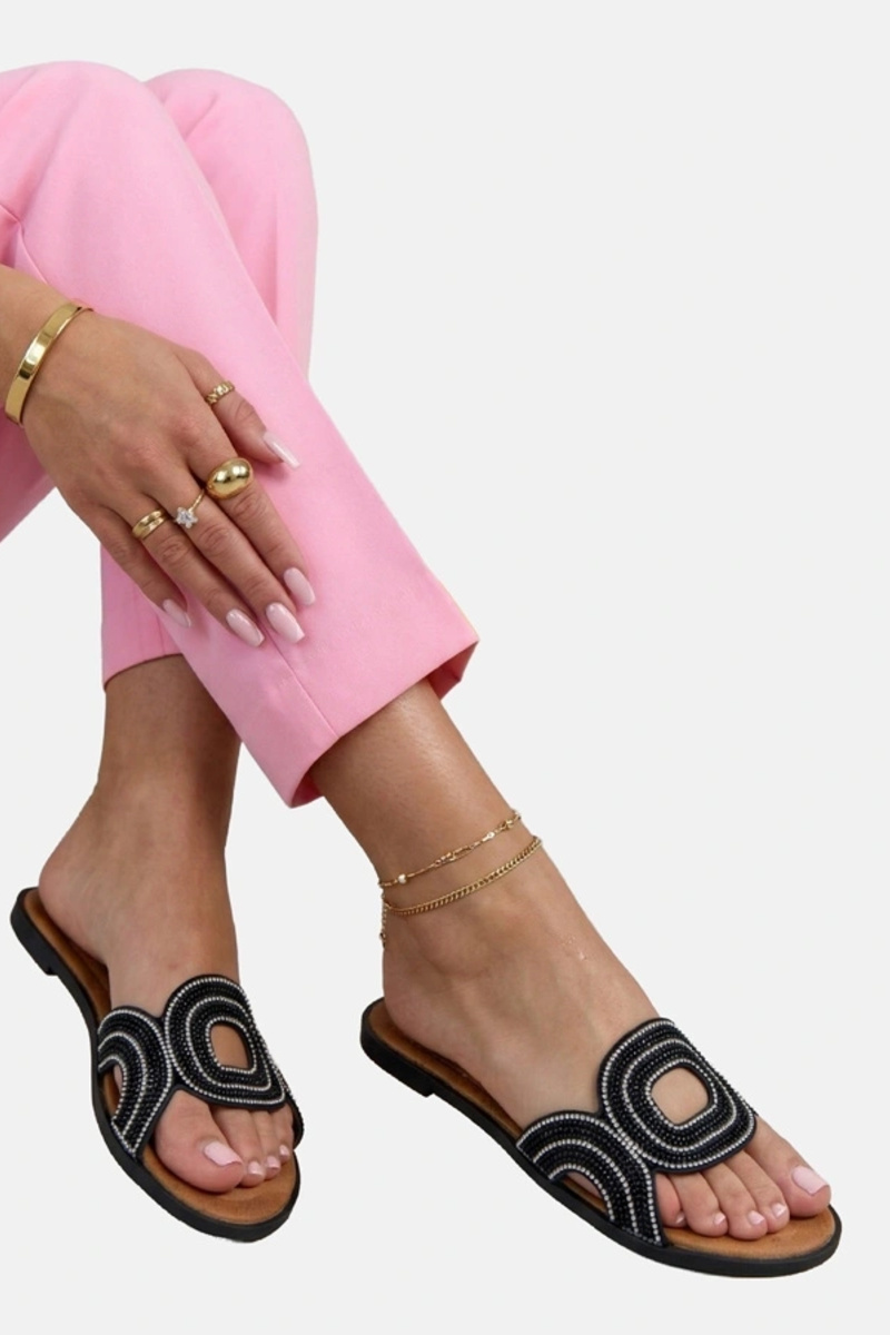 Czarne Klapki Zdobione Cyrkoniami Olivia