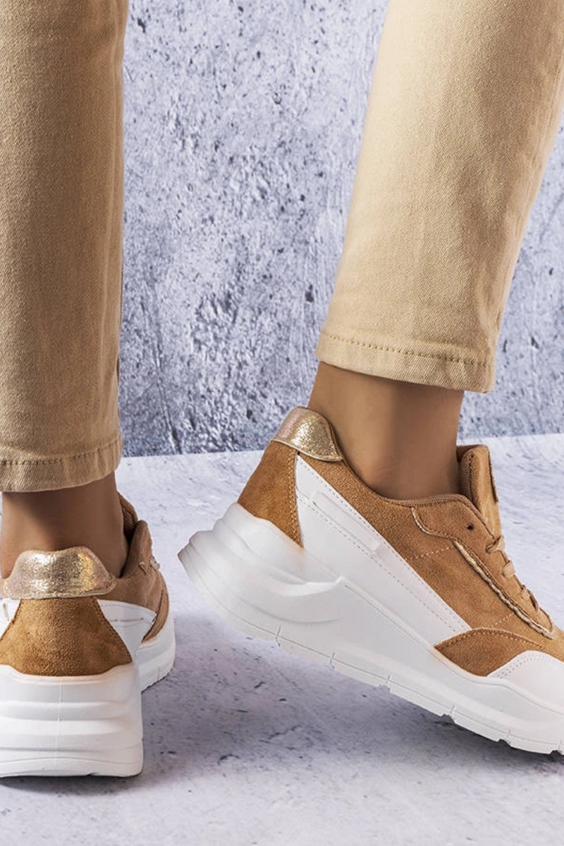 Tênis femininos esportivos na cor areia com plataforma, "Serila"