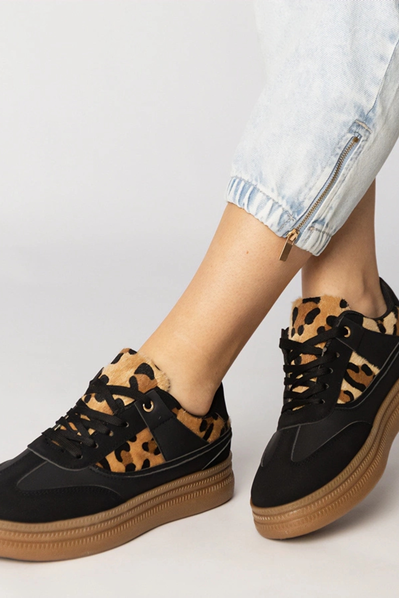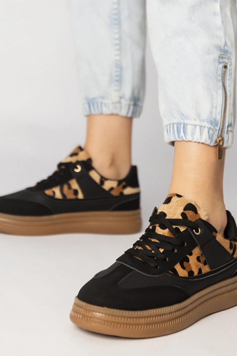 Tênis femininos de camurça com estampa de onça, "Kalesa"