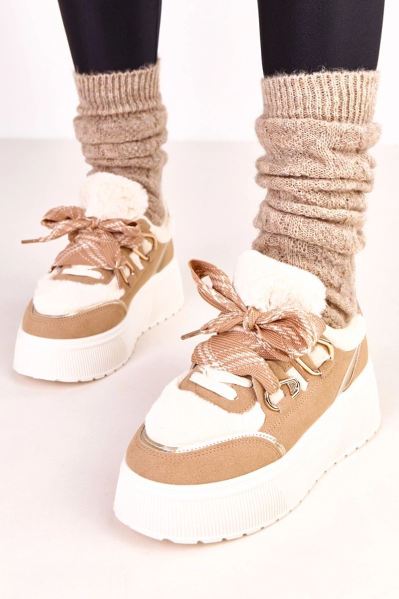 Tênis femininos esportivos na cor areia com plataforma, "Serila"