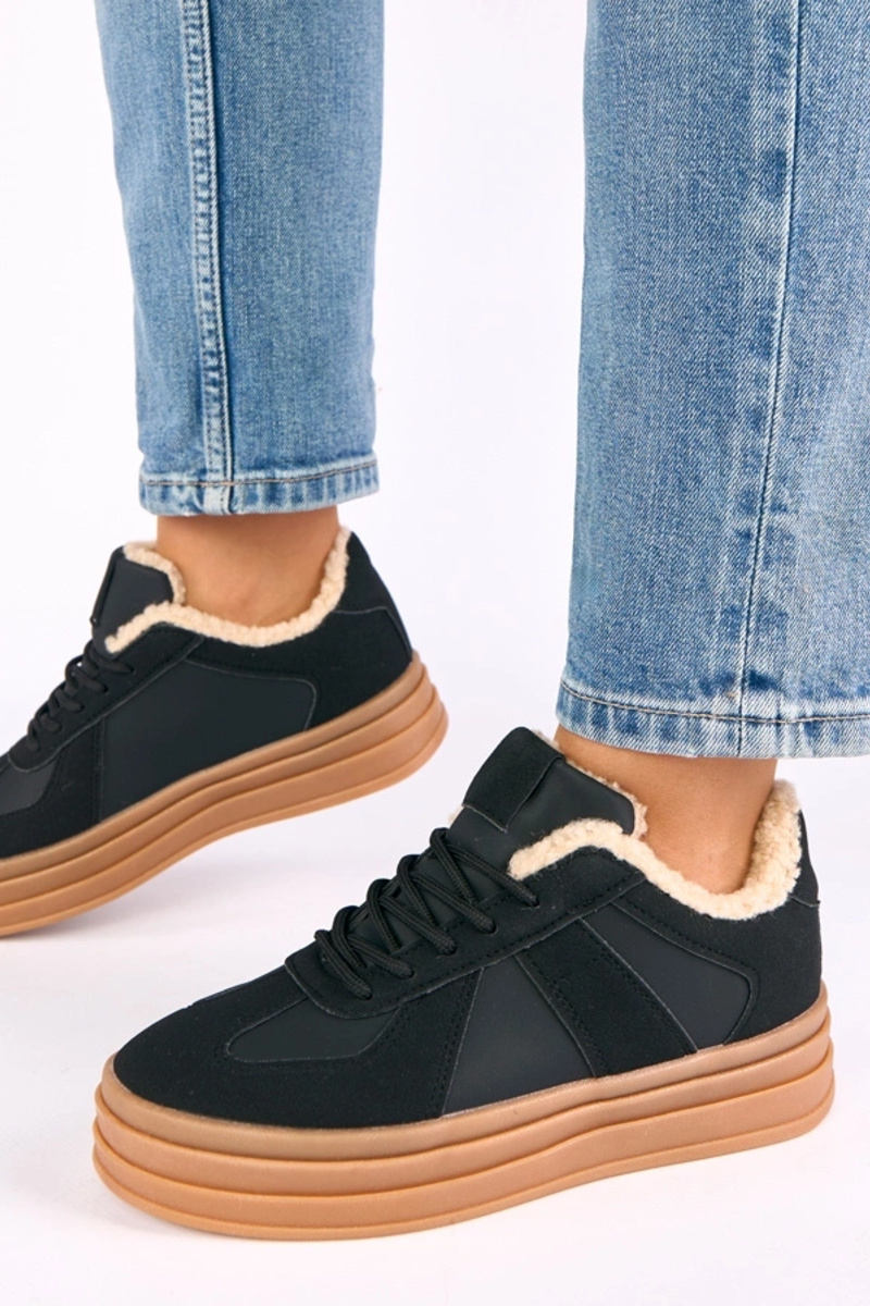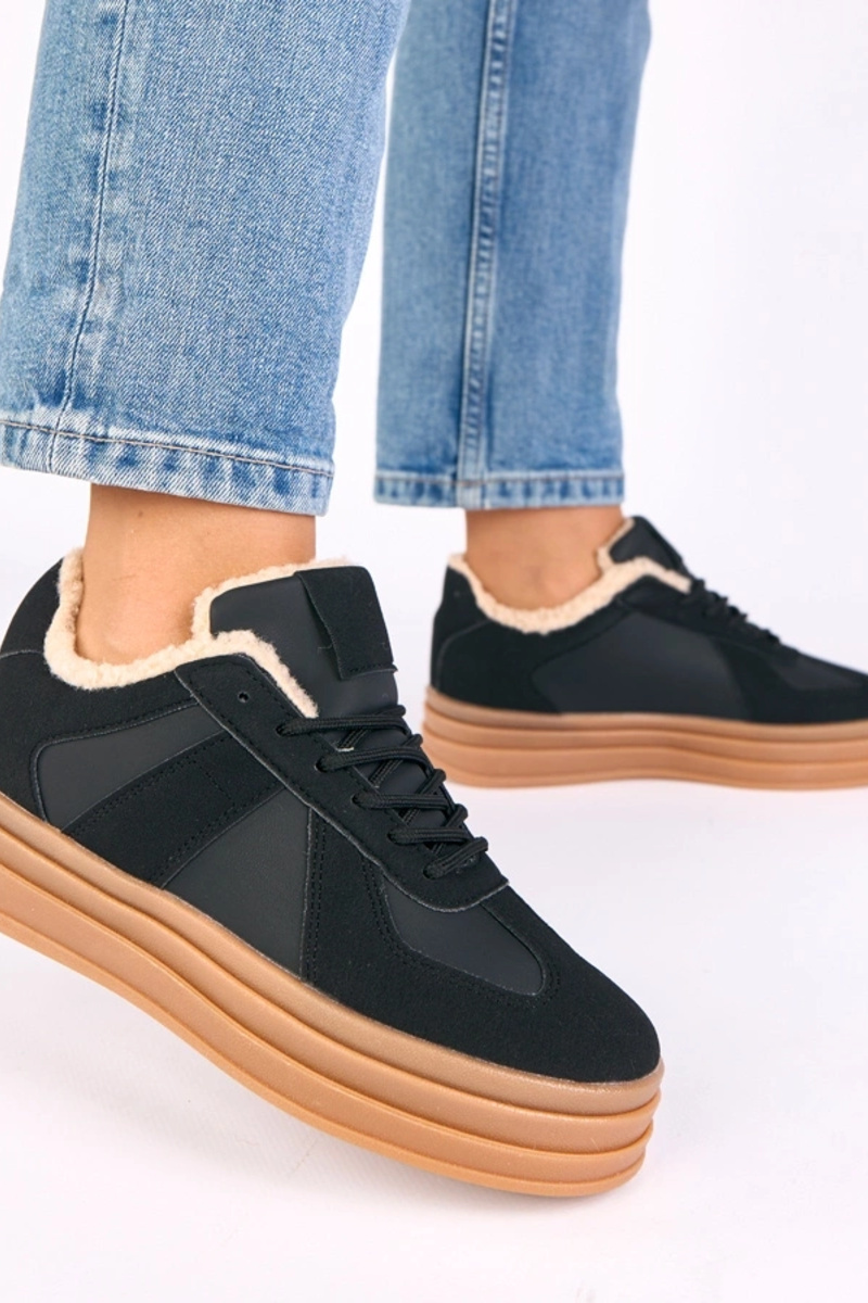 Ténis femininos em preto forrados com pele Kelsi