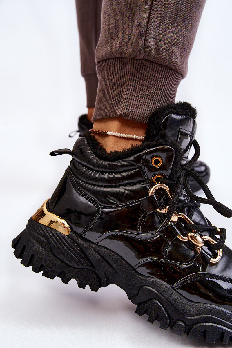 Tênis femininos aquecidos com cadarços pretos Bastini