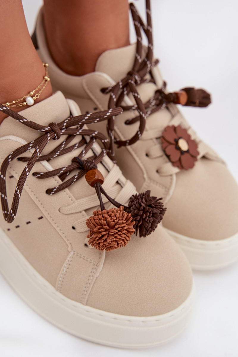 Ténis de plataforma Corinna cor areia para mulheres com pompons decorativos