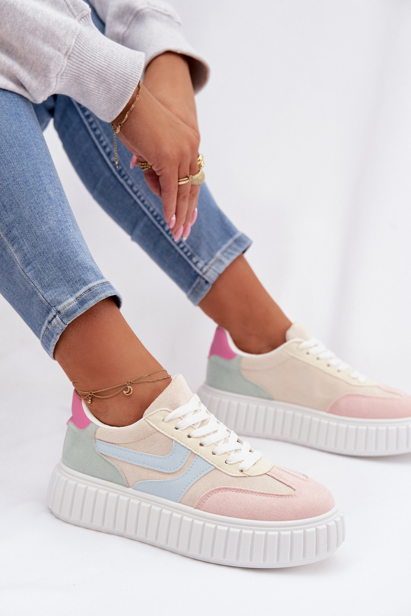 À modalo de tênis Feminino com uma plataformade camurça ecológicau Cores diferentes Cadrina