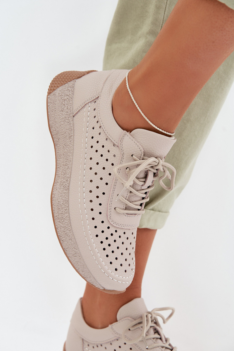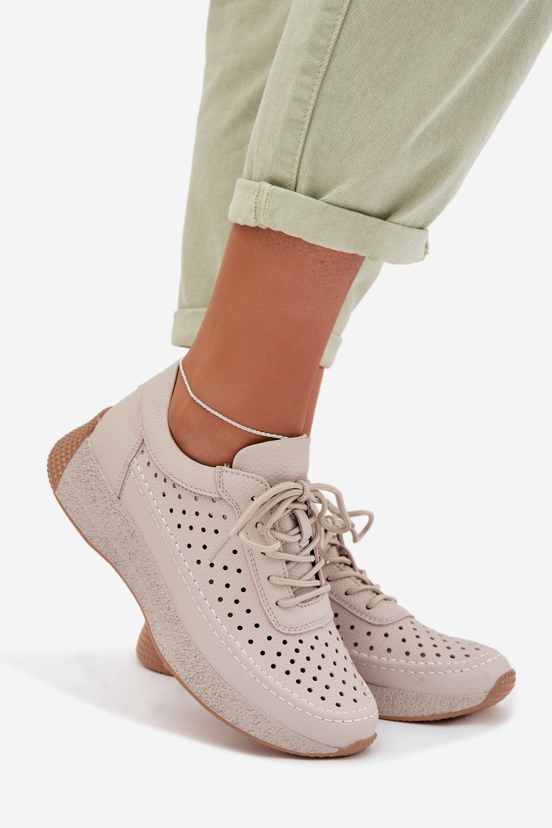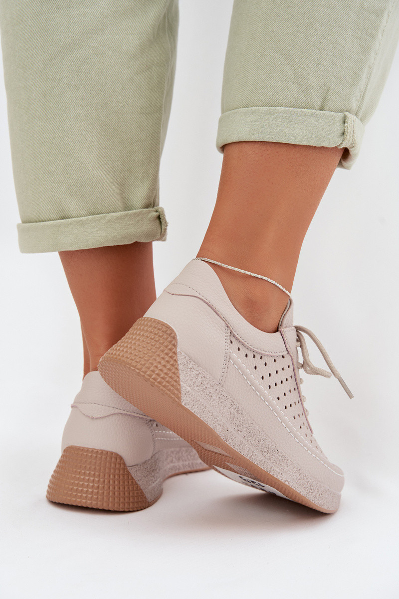 Tênis femininos esportivos com cadarços na cor areia-rosa Chillout!