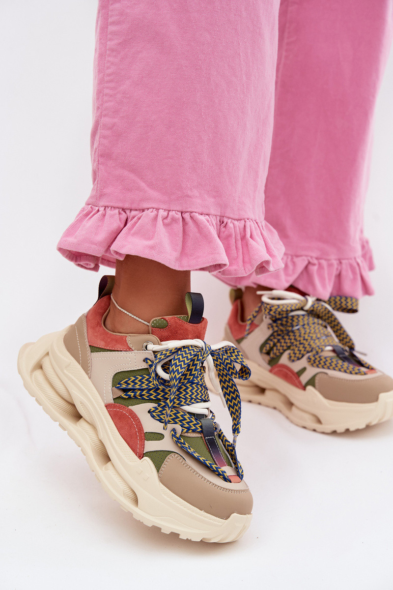 Tênis femininos de couro com plataforma D&A CR61-3133 cor areia