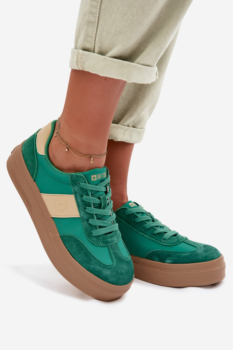 Tênis femininos de camurça de estilo esportivo Big Star TT274163 na cor verde