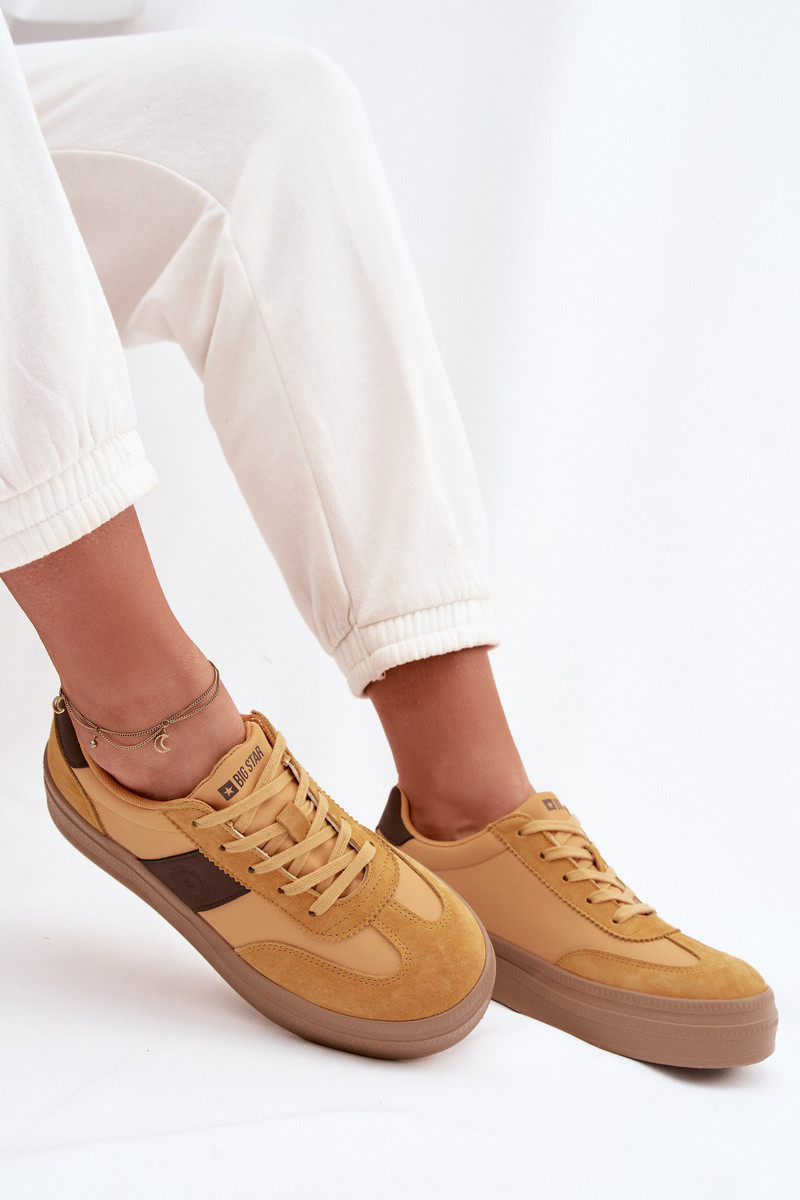 Tênis femininos de camurça de estilo esportivo Big Star TT274166 na cor amarela