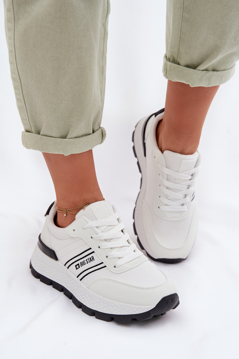 Tênis esportivos femininos com plataforma Big Star TT274882 Hi-Poly System brancos