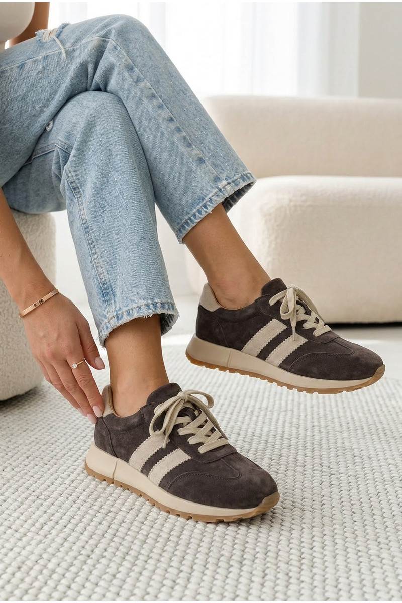 À modalo de tênis FemininoHabilitadoturalnego de camurçau cor marrom Tem que serrceline
