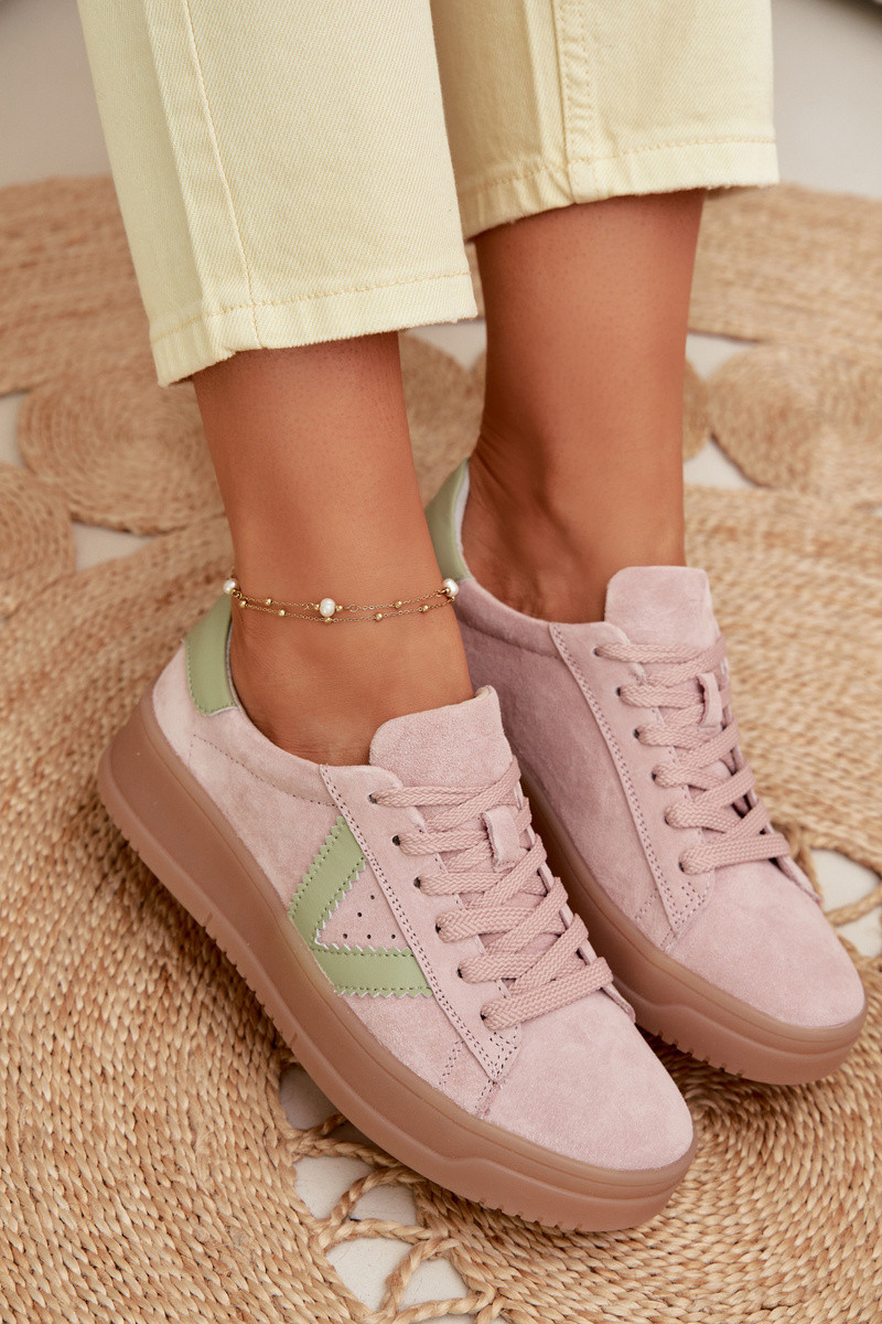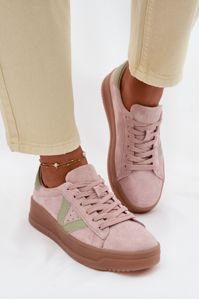 VINCEZATênis femininos estilo esportivo de camurça natural com plataforma Vinceza 79597 cor rosa